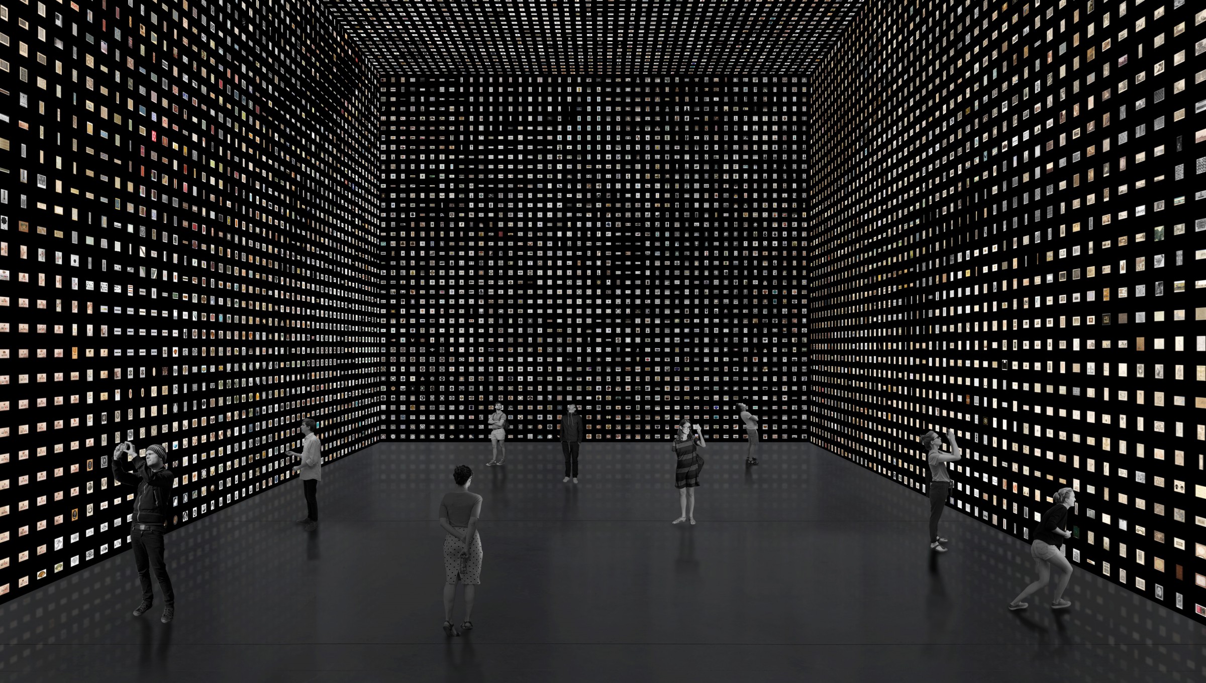 All of a museum’s digitized artifacts are laid out in a large-scale printed grid that organizes them by visual similarity. The immersive arrangement offers viewers the possibility to experience the entirety of the collection at once, and, at the same time, to discover visual and structural patterns within.