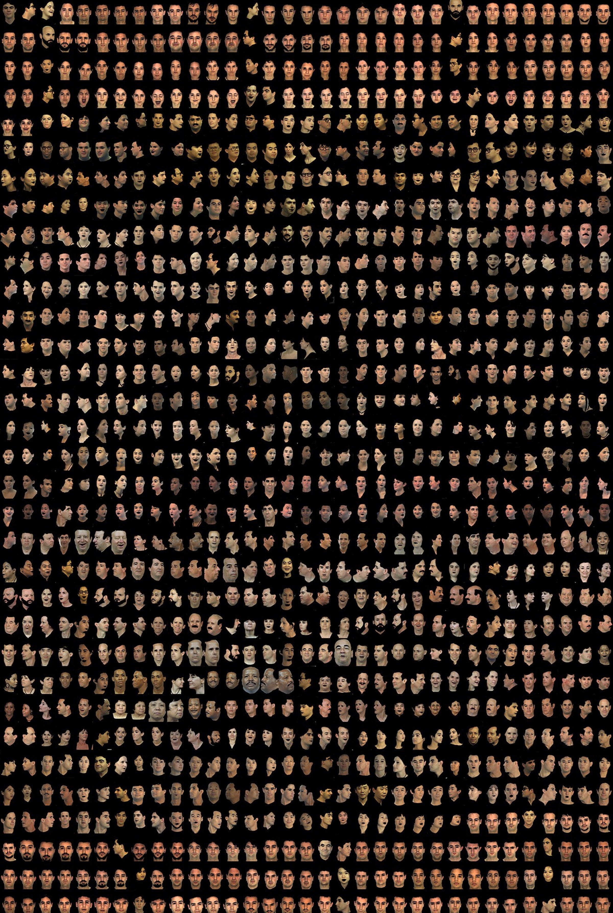 Ground Truth is a collection of image data-sets of the human body such as faces, finger prints and hand gestures. Mapping them out as large format prints lets us see images we usually never get to see. What are the aesthetics of these data sets? What are their peculiarities? How large are the data sets? How many faces are enough to develop a face recognition algorithm? What is included, what is not included? What are possible biases?