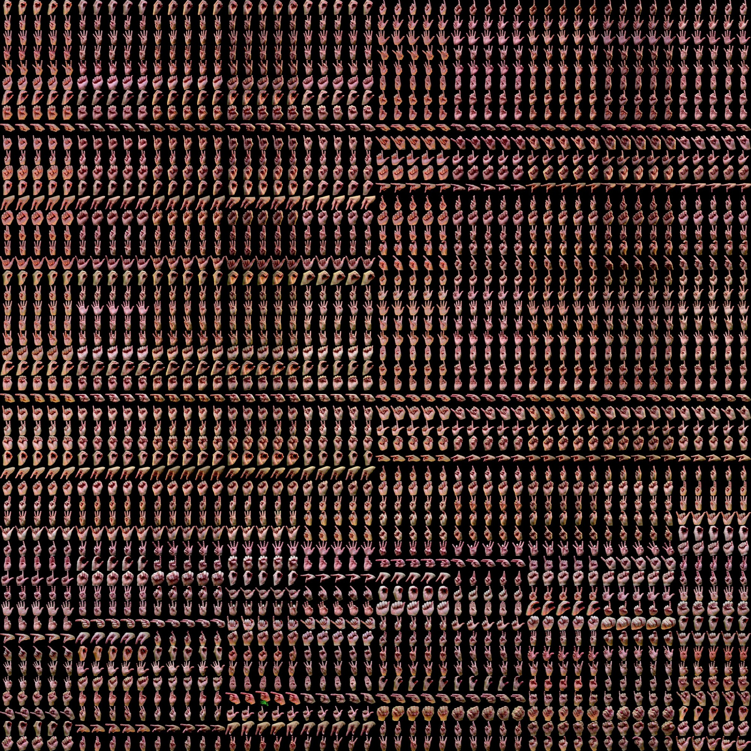Ground Truth ist eine Sammlung von Bilddatensätzen des menschlichen Körpers wie Gesichter, Fingerabdrücke und Handgesten. Wenn wir sie als Großformatdrucke darstellen, können wir Bilder sehen, die wir normalerweise nie zu sehen bekommen. Welche Ästhetik haben diese Datensätze? Was sind ihre Besonderheiten? Wie groß sind die Datensätze? Wie viele Gesichter reichen aus, um einen Gesichtserkennungs-Algorithmus zu entwickeln? Was ist enthalten, was nicht? Was sind mögliche Verzerrungen?